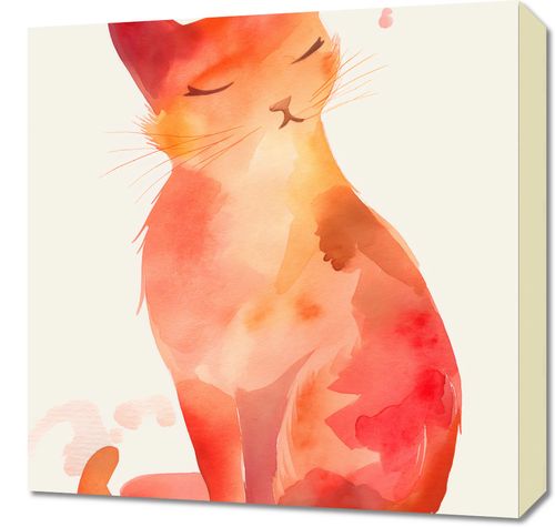 Obraz z serii wnętrza zatytułowany Akwarelowy Kot przedstawia akwarelową ilustrację spokojnego, zamyślonego kota. Kot zamyka oczy w zadowoleniu, a jego sylwetka płynnie przechodzi w bogatą paletę ciepłych odcieni czerwieni i pomarańczu, co nadaje dziełu wrażenie spokoju i ciepła. Delikatne plamy i rozmycia barw typowe dla akwareli tworzą wrażenie lekkości i przestrzeni, a jednocześnie podkreślają łagodność i spokojny nastrój obrazu. Jest to doskonały wybór dla tych, którzy pragną wprowadzić do swojego domu element relaksu i spokoju. Obraz ten idealnie wpasuje się w przestrzeń taką jak przytulna kawiarnia, zakątek do czytania w domowej biblioteczce lub pokój dziecinny, gdzie może inspirować do spokojnego snu i odpoczynku.