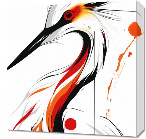 Obraz z serii motywy wschodnie zatytułowany Bocian to dynamiczna i ekspresyjna interpretacja bociana, wykonana w stylu nowoczesnej abstrakcji. Ptak przedstawiony jest za pomocą ostrych, płynnych linii i silnych kontrastów kolorystycznych, gdzie biel, czerń i intensywne odcienie czerwieni przenikają się, tworząc uczucie ruchu i energii. Ogień w oku bociana i płomienne akcenty na jego upierzeniu sugerują pasję i życiową siłę, a spontaniczne plamy i kropki dodają dziełu artystycznego zacięcia. Obraz emanuje siłą i wolnością, idealny do wnętrz, które chcą wyrazić dynamizm i siłę natury, doskonały dla przestrzeni pełnych energii jak nowoczesne biura, kreatywne pracownie, lub jako wyrazisty element dekoracyjny w domowym salonie.