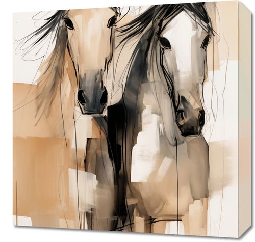 Obraz z serii wnętrza zatytułowany Dusze na Wolności. Ten artystyczny obraz przedstawia dwie abstrakcyjne sylwetki koni, uchwycone w dynamicznych, niemal eterycznych pociągnięciach pędzla. Neutralna paleta barw z dominującymi odcieniami beżu i czerni, podkreślona jest przez akcenty i plamy, co nadaje dziełu głębi i tekstury. Artystyczne, swobodne linie i plamy tuszu tworzą wrażenie ruchu i wolności, wywołując emocjonalne rezonanse z widzem. Obraz jest idealnym wyborem dla miłośników koni, sztuki współczesnej i abstrakcyjnego ekspresjonizmu, będąc nie tylko dekoracją, ale także wyrafinowanym elementem w przestrzeniach takich jak salony, biura, czy galerie sztuki.