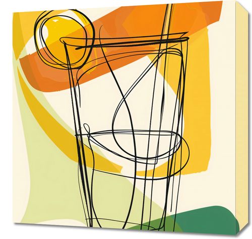 Obraz z serii boho zatytułowany Koktajl Artystyczny to kreatywne połączenie kolorów i linii, które razem tworzą abstrakcyjne przedstawienie szklanki z napojem. Dynamiczne, czarne kontury rysują się swobodnie, sugerując kształt i formę, podczas gdy tło w ciepłych odcieniach żółci i pomarańczy z nutą zieleni dodaje kompozycji letniego klimatu. Ten obraz przyciąga uwagę swoją swobodą formy i świeżością, nadając wnętrzu poczucie radosnej, niezobowiązującej atmosfery. Idealny dla tych, którzy chcą dodać swojemu otoczeniu odrobiny kulinarnego szaleństwa i artystycznego smaku.