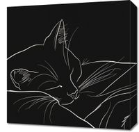 Obraz z serii minimalistyczne zatytułowany Nocny Spokój przedstawia subtelnie zarysowanego kota głęboko pogrążonego we śnie, umieszczonego na tle czarnej, nieskończonej przestrzeni. Białe linie delikatnie kreślą kształt zwierzęcia, uwypuklając jego spokojną postawę i łagodne rysy twarzy. To proste, lecz wyraziste dzieło sztuki przepełnione jest spokojem i elegancją, a kontrastowy czarno-biały motyw przyciąga wzrok i wprowadza do wnętrza atmosferę tajemniczości i wyciszenia. Idealny dla przestrzeni, które są azylem relaksu i odpoczynku, jak sypialnie czy zakątki do medytacji.