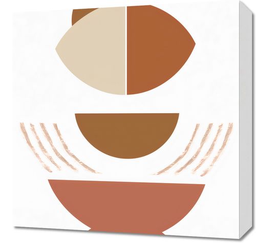 Obraz z serii boho zatytułowany Pastelowa Hipnoza. Łączy prostotę kształtów geometrycznych z subtelnością pastelowych barw, tworząc obraz o niemal hipnotycznym uporządkowaniu. W centrum kompozycji znajduje się dualistyczny kształt, który balansuje między symetrią a asymetrią, otoczony przez półkola i linie, przywołujące na myśl delikatne promienie słońca. Paleta kolorystyczna ogranicza się do ciepłych odcieni beżu, brązu i rdzawego różu, co dodaje dziełu wyrafinowanej subtelności. Doskonale odnajdzie się jako centralny punkt w jasnych, przestronnych wnętrzach, gdzie może stać się tłem dla głębokich refleksji, lub jako element dekoracyjny w minimalistycznie urządzonych pomieszczeniach, dodając im ciepła i elegancji.