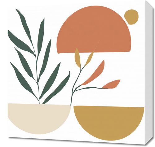 Obraz z serii boho zatytułowany Przekwit Tonacji.Obraz łączy prostotę z naturą, przedstawiając abstrakcyjne roślinne formy na tle geometrycznych kształtów. Paleta kolorów w tonacjach ziemi i spokojnych zielonych oraz pomarańczowych odcieniach, razem z kształtem przypominającym wschodzące słońce, wywołuje poczucie spokoju i nowego początku. Dzieło to idealnie nadaje się do przestrzeni, w których dominuje jasność i naturalność, takich jak skandynawskie wnętrza, miejsca odpoczynku lub przestrzenie pracy, które cenią sobie prostotę i harmonię. Może wprowadzić do pomieszczenia elementy natury w subtelny, uporządkowany sposób.
