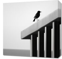 Obraz z serii pejzaże zatytułowany Samotna Odchłań. Ten skrajnie minimalistyczny obraz przedstawia pojedynczego ptaka spoczywającego na czystej, białej krawędzi konstrukcji, z subtelnym tłem nieskończonego morza. Zdjęcie w skali szarości, gdzie tylko kontury ptaka wyróżniają się na jednolitym tle, wywołuje poczucie spokoju i introspekcji. Idealny dla nowoczesnych przestrzeni biurowych i domowych, które pragną oddać hołd prostocie i skupieniu, a także jako przemyślany akcent w galeriach sztuki czy minimalistycznych salonach.