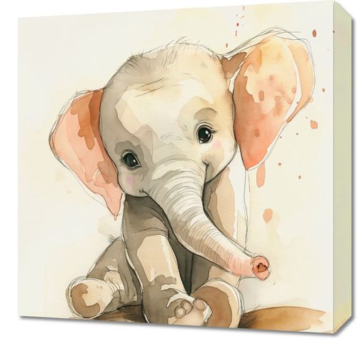 Obraz z serii wnętrza zatytułowany Siwy Słonik to czarująca akwarela przedstawiająca małego, siwego słonia z dużymi, wyrazistymi oczami i rozłożystymi uszami w odcieniach różu. Delikatność i ciepło ilustracji wydobywają ujmującą niewinność młodego słonia. Rozpryski akwareli wokół postaci dodają dynamiki i lekkości, sugerując radosną zabawę i beztroskę. Ten obraz wprowadza atmosferę spokoju i radości, idealnie nadają się do ozdobienia przestrzeni dziecięcej, takiej jak pokoje maluchów, przedszkola, sale zabaw czy kąciki czytelnicze w bibliotekach. Jego urokliwy obraz może inspirować młode umysły do marzeń i pozytywnego myślenia.