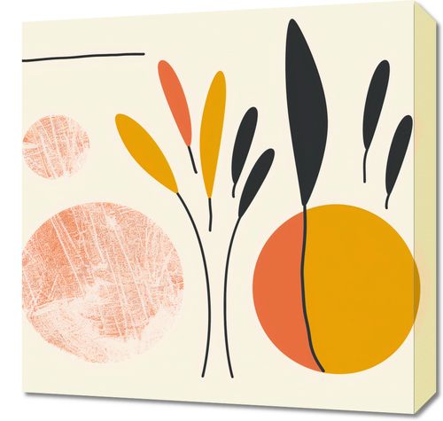 Obraz z serii boho zatytułowany Słoneczne Refleksy.Obraz czerpie z esencji natury i prostoty, przedstawiając stonowane, ale zarazem żywe kształty i linie roślin. Geometryczne kształty w ciepłej palecie barw - od głębokiego pomarańczu do delikatnego żółcienia - są wyróżnione na tle stonowanego beżu, tworząc wrażenie słońca i jego łagodnego światła rozpraszającego się w naturze. Dzieło to będzie pięknie komponować się z jasnymi, przestronnymi wnętrzami, wnosząc do nich poczucie ciepła i optymizmu. Idealnie nadaje się do dekoracji ściennej w salonach, jadalniach lub przestrzeniach oczekujących, gdzie może dodać odrobinę życia bez dominowania nad całością aranżacji. Zapewni lekki, ale wyrazisty akcent, który może inspirować i przynieść radość każdego dnia.