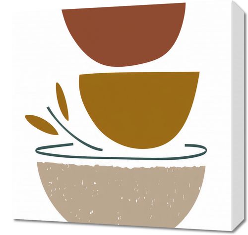 Obraz z serii boho zatytułowany Spójna Forma. Grafika przedstawia studium geometrycznej prostoty i spokoju. Półkoliste formy w odcieniach brązu, musztardowego i beżu, układają się w delikatnie zbalansowaną kompozycję, która może przywodzić na myśl przekroje naturalnych elementów lub subtelne, artystyczne interpretacje krajobrazu. Smukłe linie przypominające rośliny dodają lekkości i dynamiki, tworząc przyjemne dla oka połączenie form organicznych i geometrycznych.Dzieło świetnie wpisze się w ciepłe, jasne przestrzenie, takie jak przytulne kawiarnie, skandynawskie wnętrza lub jako element wykończeniowy w jadalniach, gdzie może dodać harmonii i naturalnego spokoju. Jest to doskonały wybór dla tych, którzy cenią sobie spokojną estetykę i chcą wnieść odrobinę zrównoważonej, wizualnej przyjemności do swojego otoczenia.