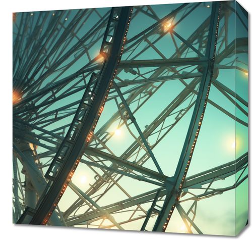 Obraz z serii wnętrza zatytułowany Światła Molocha. Na tym zachwycającym zdjęciu wielka konstrukcja diabelskiego młyna jest uchwycona z nietypowej perspektywy, ukazując skomplikowaną sieć metalowych prętów oświetlonych setkami migoczących światełek. Złoty zachód słońca w tle nadaje scenie ciepły, oniryczny nastrój. Ten obraz to pochwała inżynierskiego geniuszu i miejskiego życia, idealnie komponujący się w nowoczesnych przestrzeniach, takich jak biura, lofty, a także w przestrzeniach publicznych czy domowych salonach. Jest to również doskonała inspiracja dla tych, którzy cenią sobie miejską estetykę i nowoczesny design.