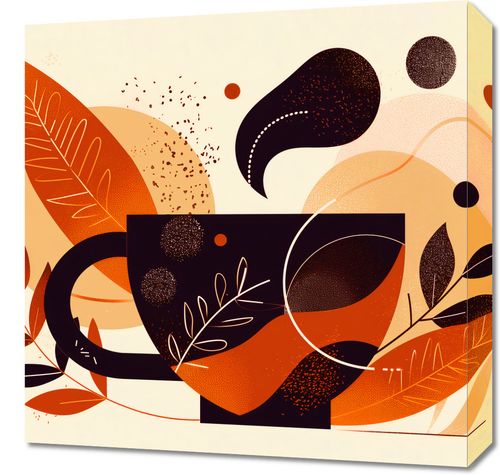 Obraz z serii minimalistyczne zatytułowany Wachlarz Ciepła. Ta kompozycja charakteryzuje się bogatymi, ciepłymi barwami jesieni, łącząc brązy, pomarańcze i czernie z delikatnymi liśćmi i abstrakcyjnymi kształtami, co razem tworzy dynamiczną, ale harmonijną całość.Ten obraz będzie idealnym dodatkiem do przestrzeni, które chcą wnieść trochę ciepła i artystycznego charakteru do swojego wnętrza. Jego ziemiste barwy i wzory mogą przyciągnąć oko w salonie, jadalni, czy współczesnej sypialni, wnioskując poczucie komfortu i naturalnego piękna.