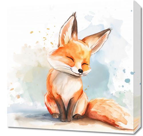Obraz z serii wnętrza zatytułowany Zadowolony Lisek. Ten uroczy akwarelowy obraz przedstawia uśmiechniętego, zadowolonego lisa, który z zamyśleniem spogląda w dal, otoczony przez delikatne akcenty akwareli. Kolorowe plamy i rozbryzgi tuszu dodają lekkości i ruchu kompozycji, podkreślając beztroski charakter ujęcia. Idealnie nadaje się do przestrzeni pełnych ciepła i radości, takich jak pokoje dziecięce, kreatywne pracownie, czy przytulne kąciki do wypoczynku w domu. Ten obraz z pewnością wprowadzi element radosnego spokoju i pozytywnej energii do każdej przestrzeni.