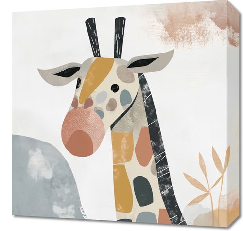 Obraz z serii wnętrza zatytułowany zatytułowany Żyrafa Bambino przedstawia stylizowany wizerunek żyrafy, którego cechy zostały zredukowane do prostych, geometrycznych kształtów i bloków pastelowych barw. Delikatne tekstury i ciepłe odcienie tworzą harmonijną kompozycję, która przyciąga wzrok i wprowadza do wnętrza spokój. Tło jest minimalistyczne z akcentami abstrakcyjnych form, co dodatkowo podkreśla nowoczesny charakter dzieła. Ten obraz będzie idealnym dodatkiem do przestrzeni o współczesnym designie, takich jak nowoczesne biura, kreatywne przestrzenie pracy, a także do pokojów dziecięcych lub wszędzie tam, gdzie chcemy dodać odrobinę zabawy i elegancji.