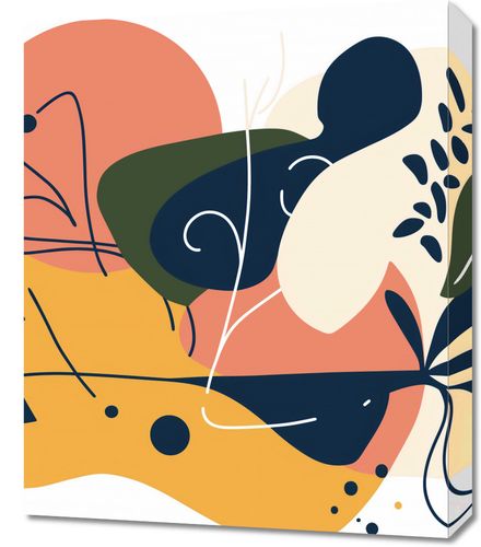 Obraz z serii minimalistyczne zatytułowany Dynamika Wizji. Grafika prezentuje żywą kompozycję abstrakcyjnych kształtów i linii, które tworzą energiczny, ale harmonijny obraz. Kolorystyka oscyluje wokół ciepłych tonów pomarańczu, żółci i bieli, z akcentami głębokiej zieleni, co nadaje pracy witalność i świeżość. Idealnie sprawdzi się jako ożywczy element w przestrzeniach minimalistycznych, takich jak nowoczesne biura, kreatywne studia, czy też domowe atelier. Może stanowić też centralny punkt w pomieszczeniach o stonowanej kolorystyce, przynosząc energię i ciepło do wnętrza. Wprowadzi dynamizm do każdej przestrzeni, zachowując przy tym poczucie elegancji i współczesnego designu.