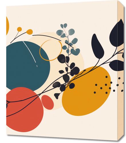 Obraz z serii minimalistyczne zatytułowany Kolaż Przyrody. Grafika ta łączy organiczne kształty i roślinne motywy z geometrycznymi figurami. Prezentuje bogate połączenie kolorów - od głębokiego granatu przez czerwień, musztardowy żółty po delikatne beże. Wyróżnia się przez obecność roślinnych sylwetek na pierwszym planie, które nadają kompozycji naturalnego charakteru.Ten obraz będzie wspaniałym dodatkiem do wnętrz, gdzie panuje spokój i równowaga. Jego stonowana, ale wyrazista kolorystyka sprawi, że będzie doskonałym uzupełnieniem przestrzeni skandynawskich, minimalistycznych, a nawet boho. Wydaje się być idealnym wyborem do salonu, sypialni lub miejsca pracy dla osób ceniących sobie połączenie sztuki i natury, gdzie mógłby stać się centralnym elementem dekoracyjnym.