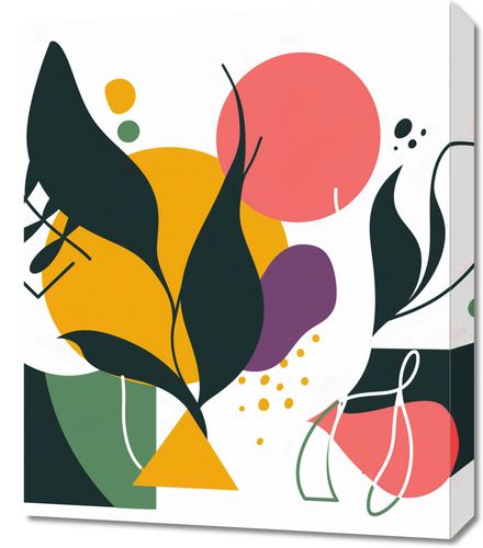 Obraz z serii minimalistyczne zatytułowany Kolorowa Abstrakcja Botaniczna. Prezentuje on żywą grę kolorów i kształtów, z akcentami organicznych form roślin i geometrycznych figur na tle. Zestawienie soczystych barw, takich jak żółć, purpura i różne odcienie zieleni, tworzy kompozycję pełną energii i życia. Ten obraz doskonale uzupełni przestrzeń, w której chce się wprowadzić odrobinę natury w nowoczesnym wydaniu. Będzie idealnym dodatkiem do jasnych, ekologicznych wnętrz, kreatywnych przestrzeni pracy, czy nawet klasycznych salonów, które poszukują śmiałego, ale nie dominującego elementu dekoracyjnego.