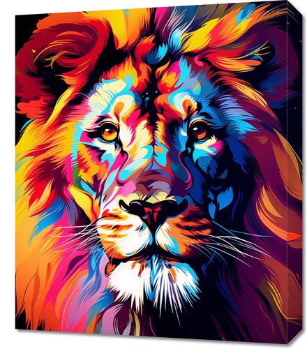 Obraz z serii abstrakcja zatytułowany Kolory Królestwa. Ten odważny i dynamiczny obraz przedstawia króla zwierząt - lwa, którego grzywa została zinterpretowana w eksplozji żywych, abstrakcyjnych barw. Wzór i intensywność kolorów podkreślają majestat i siłę lwa, dodając mu nowoczesnego i artystycznego charakteru. To dzieło sztuki przemawia mocą i wolnością, będąc idealnym wyborem dla przestrzeni kreatywnych, odważnych i pełnych energii, takich jak nowoczesne salony, pracownie artystyczne, czy przestrzenie młodzieżowe.