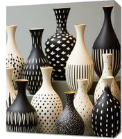 Obraz z serii wnętrza zatytułowany Kontrast i Harmonia. Eleganckie wazony w subtelnych odcieniach bieli i intensywnej czerni stoją dumnie na szarości tła. Geometryczne i abstrakcyjne wzory, które zdobią te wazony, przypominają tętniącą życiem tańczącą symfonię. Kropki, linie i formy tworzą intrygującą kompozycję, która przyciąga wzrok i dodaje wnętrzom wyjątkowej głębi. Subtelna gra świateł i cieni, a także kontrast między monochromatycznymi barwami, dodaje tej kolekcji odrobinę tajemniczości. Będzie to idealne dopełnienie zarówno dla nowoczesnych przestrzeni loftowych, jak i eleganckich salonów z naciskiem na design. Ten wyjątkowy plakat doskonale odnajdzie się w galeriach sztuki oraz w luksusowych hotelach.