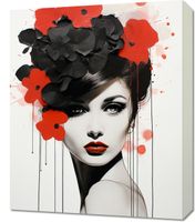 Obraz z serii wnętrza zatytułowany Kwiatowa Pasja. Magnetyczne spojrzenie kobiety zaakcentowane jest eksplozją czerwonych i czarnych kwiatów, które zdają się być przedłużeniem jej duszy. Jej soczyste czerwone usta są echem barwnych petali, które otaczają ją niczym aura. Splaty czerwieni na monochromatycznym tle dodają kompozycji dynamiki i nieprzewidywalności. Idealnie odnajdzie się w luksusowych apartamentach oraz w eleganckich salonach kosmetycznych.