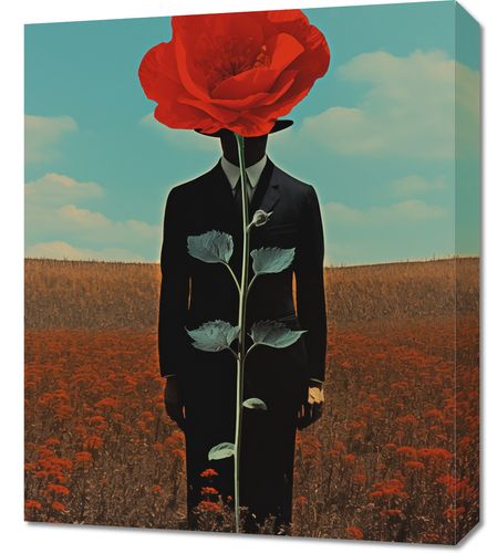 Obraz z serii abstrakcja zatytułowany Obserwator zza Maku. Ten obraz przedstawia surrealistyczny obraz człowieka z głową w formie rozkwitającego czerwonego maku, stojącego na polu pełnym kwiatów tej samej rośliny. Kompozycja gra na kontraście między ludzką postacią a bujnością natury, podkreślając połączenie człowieka z otaczającym go światem. Idealny dla przestrzeni szukających głębi artystycznej i wizualnej prowokacji, ten plakat będzie doskonałym dodatkiem do nowoczesnych salonów, galerii sztuki czy przestrzeni kreatywnych, gdzie może inspirować i wywoływać refleksję.