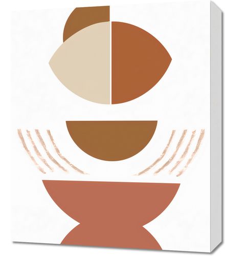 Obraz z serii boho zatytułowany Pastelowa Hipnoza. Łączy prostotę kształtów geometrycznych z subtelnością pastelowych barw, tworząc obraz o niemal hipnotycznym uporządkowaniu. W centrum kompozycji znajduje się dualistyczny kształt, który balansuje między symetrią a asymetrią, otoczony przez półkola i linie, przywołujące na myśl delikatne promienie słońca. Paleta kolorystyczna ogranicza się do ciepłych odcieni beżu, brązu i rdzawego różu, co dodaje dziełu wyrafinowanej subtelności. Doskonale odnajdzie się jako centralny punkt w jasnych, przestronnych wnętrzach, gdzie może stać się tłem dla głębokich refleksji, lub jako element dekoracyjny w minimalistycznie urządzonych pomieszczeniach, dodając im ciepła i elegancji.