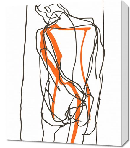 Obraz z serii minimalistyczne zatytułowany Ruch i Akcent. Grafika wykorzystuje dynamiczny zarys, aby przekazać poczucie ruchu i energii. Grube, czarne linie szkicują formę, która może być interpretowana jako postać w ruchu, a intensywne, pomarańczowe akcenty dodają dziełu dramatyzmu i głębi. Sama forma jest tylko nakreślona, pozostawiając wiele miejsca dla interpretacji widza. Całość zdaje się być złapanym w locie fragmentem większej narracji, momentem zawieszonym między akcją a spoczynkiem.Plakat wniesie do przestrzeni surową, artystyczną energię. Idealnie nada się do awangardowych przestrzeni, jak loftowe apartamenty, studia artystyczne czy nowoczesne biura, gdzie może stać się punktem zaczepienia dla oka i inspiracją do kreatywnych dyskusji.