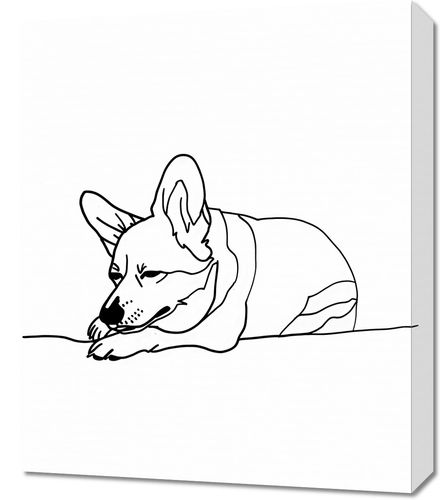 Obraz z serii minimalistyczne zatytułowany Śpiący Corgacz. Obraz przedstawia słodki, konturowy rysunek spoczywającego psa, którego uspokajająca postawa i zrelaksowana ekspresja oddają uczucie spokoju. Czystość linii i minimalizm rysunku podkreślają prostotę chwili i bezwarunkową miłość, jaką niosą ze sobą nasi czworonożni przyjaciele.To dzieło doskonale wypełni przestrzeń ciepłem i ukojeniem, nadając się idealnie do pomieszczeń mieszkalnych, takich jak salon czy sypialnia, a także przestrzeni relaksacyjnych lub wypoczynkowych, takich jak czytelnie, kawiarnie lub poczekalnie. Może być też uroczym dodatkiem do pokoju dziecinnego, przynosząc poczucie towarzystwa i ochrony.