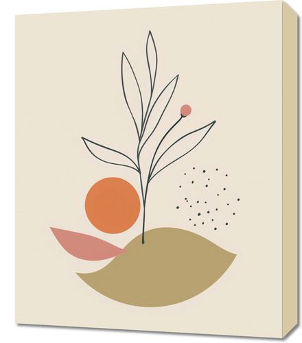 Plakat z serii boho zatytułowany Subtelna Naturaleza. Prezentuje on minimalistyczny obraz rośliny na tle geometrycznych kształtów. Złagodzone barwy, takie jak musztardowy, koralowy i pastelowy róż, połączone z akcentami czerni i kremowego tła, tworzą obraz pełen harmonii i subtelnego piękna. Niemal poetycka kompozycja sugeruje spokój natury, z rośliną osadzoną w sercu plakatu, która wydaje się być uosobieniem wzrostu i spokoju.Ten obraz jest idealny dla wnętrz w stylu skandynawskim, boho, czy też modernistycznym, dodając lekkości i organicznego charakteru przestrzeni. Doskonale sprawdzi się w salonie, sypialni, a nawet w przestrzeni biurowej, przynosząc element spokoju i zrównoważonej estetyki.