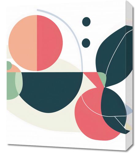 Obraz z serii minimalistyczne zatytułowany Symfonia Wizji. Ta grafika wykorzystuje proste, lecz wyrafinowane kształty geometryczne i roślinne formy, które razem tworzą płynną i spójną kompozycję. Kolorystyka jest subtelna i harmonijna, łącząc pastelowe tony z akcentami głębokiej zieleni i czerwieni, co nadaje pracy delikatność i współczesny charakter. Obraz ten idealnie wpasuje się w nowoczesne wnętrza, które poszukują równowagi między prostotą a wyrafinowaniem. Dzięki swojej minimalistycznej estetyce może służyć jako spokojny akcent w przestrzeniach domowych, takich jak salon, sypialnia, lub jako elegancki element dekoracyjny w przestrzeniach komercyjnych i biurowych.
