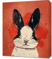 Obraz z serii abstrakcja zatytułowany Uśmiech! przedstawia wizerunek królika w stylistyce inspirowanej street art'em. Tło w ciepłej, czerwonej kolorystyce jest pokryte energicznymi plamami i rozpryskami farby, nadając dynamizmu całości kompozycji. Królik jest przedstawiony frontowo, z głową skierowaną prosto na widza. Jego uszy są wyraziste, czarne z białymi akcentami, co daje efekt trójwymiarowości. Urocza twarz zwierzęcia z subtelnym uśmiechem i charakterystycznymi wąsami wydaje się emanować spokojem i ciepłem. Detale takie jak tekstura futra królika są zaznaczone delikatnymi liniami i cieniowaniem, co dodaje realizmu i głębi grafice. Obraz ten sprawdziłby się jako dekoracja w przestrzeniach współczesnych, które cenią sobie oryginalność i lekkość wizualną, a jednocześnie wprowadza przytulny, domowy nastrój.