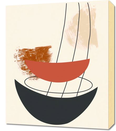 Obraz z serii boho zatytułowany Wiatr w Żaglu.Ten obraz to abstrakcyjna interpretacja żaglowca na spokojnym morzu. Proste czarne linie żagli w kształcie łuków na intensywnie czerwonym tle symbolizują siłę wiatru, a szerokie, ciemne dno łodzi zapewnia stabilność kompozycji. Dynamiczne, abstrakcyjne pociągnięcia pędzla w tle mogą przypominać zachodzące słońce lub odbicie w wodzie. Obraz jest idealnym wyborem dla przestrzeni, które cenią sobie spokój i prostotę wizualną, jednocześnie pragnąc dodać akcent kolorystyczny i dynamiki. Wniesie on element inspiracji i marzeń o podróży, będąc doskonałym dodatkiem do salonu, biura lub miejsca wypoczynku, w którym sztuka ma stanowić subtelne zaproszenie do relaksu i odprężenia.