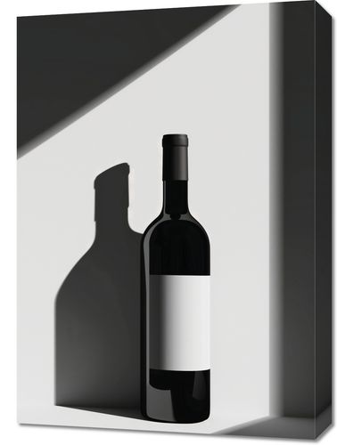 Obraz z serii wnętrza zatytułowany Butla Wina . Przedstawia minimalistyczny i elegancki wizerunek butelki wina. Kompozycja jest prosta i nowoczesna, z butelką umieszczoną na jasnym tle z ostrymi liniami cienia, które dodają głębi i zainteresowania wizualnego. Cienie są ostre i wyraźne, co sugeruje, że światło padające na butelkę jest mocne i bezpośrednie. Butelka ma klasyczną etykietę bez żadnych detali, co nadaje całemu obrazowi wyrafinowany charakter. Użycie kontrastu między ciemnymi tonami butelki a jasnym tłem podkreśla formę i sylwetkę przedmiotu, skupiając uwagę na jego zarysie. Taki obraz mógłby być świetnym dodatkiem do wnętrz urządzonych w stylu minimalistycznym lub współczesnym, a także pasowałby do przestrzeni, gdzie celebruje się kulturę wina.