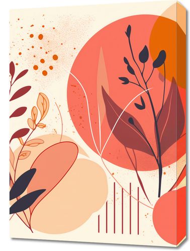 Obraz z serii minimalistyczne zatytułowany Ciepłe Popołudnie. Grafika ta przedstawia estetyczne roślinne motywy na tle stylizowanych kształtów w ciepłej palecie barw, łącząc odcienie czerwieni, pomarańczy i beżu. Elementy takie jak kropki i linie dodają tekstury i dynamiki, tworząc wrażenie ruchu i lekkości. Ten obraz idealnie komponuje się z wnętrzami, które czerpią inspiracje z natury, wykorzystując jej motywy i barwy. Jego ciepłe tony będą doskonale pasować do salonów, pokoi relaksacyjnych czy nawet nowoczesnych biur, gdzie może dodać odrobinę spokoju i domowego ciepła.
