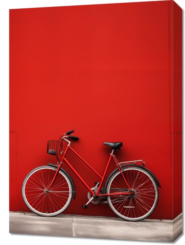 Obraz z serii wnętrza zatytułowany Czerwony Rower. Przedstawia klasyczny rower w intensywnym czerwonym kolorze, który kontrastuje z jednolitym, czerwonym tłem ściany. Ten silny, monochromatyczny obraz jest esencją miejskiego minimalizmu, w którym każdy detal, od lśniącego metalu po symetryczne linie ramy roweru, przyciąga oko. Ten obraz sprawdzi się doskonale w nowoczesnych, industrialnych przestrzeniach, biurach o dynamicznym charakterze oraz wszędzie tam, gdzie chce się dodać odważny akcent kolorystyczny. To idealne odzwierciedlenie miejskiego ducha dla tych, którzy cenią sobie prostotę i energię wizualną w swoim otoczeniu.