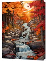 Obraz z serii pejzaże zatytułowany Jesienne Wodospady. Ten malowniczy obraz przedstawia serię kaskadowych wodospadów otoczonych przez bujne, jesienne lasy w pełni złotego sezonu. Odcienie pomarańczy, czerwieni i żółci liści klonu tworzą ciepłą paletę barw, która kontrastuje z chłodnym błękitem rwących wód. Słońce wschodzące na horyzoncie dodaje głębi i blasku całej scenie, evokując uczucie spokoju i odnowy. Idealny do ozdoby każdego wnętrza, szczególnie tych, które chcą przynieść elementy zewnętrznej zmienności i naturalnego piękna do środowiska domowego.