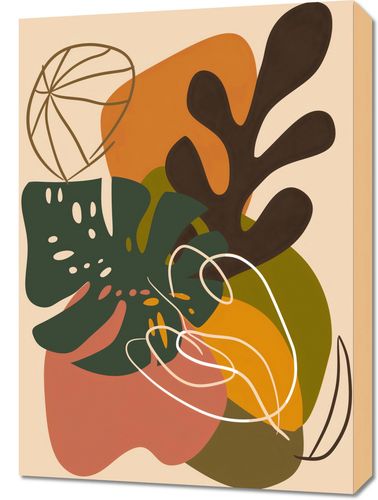 Obraz z serii minimalistyczne zatytułowany Leśna Kompozycja. Na tej grafice przedstawione są uproszczone, ale wyraźne kształty liści i roślin leśnych, które łączą się tworząc ciepłą i kojącą kompozycję. Barwy jesienne, od głębokiej zieleni, przez ciepły pomarańcz, aż po bogate brązy, są połączone z delikatnymi liniami, które przypominają światło przebijające się przez drzewa.Ten obraz będzie pięknym uzupełnieniem wnętrz, w których dominuje natura i spokój, takich jak skandynawskie lub rustykalne salony, przestrzenne holu czy jasne sypialnie. Wyraźne formy i ciepłe barwy wprowadzą harmonię i przyjemną dla oka różnorodność do każdego pomieszczenia.