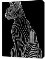 Obraz z serii abstrakcja zatytułowany Minimalny Kontur prezentuje minimalistyczny i stylowy wizerunek kota, wykonany w technice linii konturowych. Czyste, białe linie o zróżnicowanej grubości tworzą sylwetkę kota na jednolitym, czarnym tle, dając efekt elegancji i prostoty. Kompozycja skupia się na gracją i wyrafinowaną postawę kota, z wyraźnie zaznaczonymi uszami, oczami i kształtem ciała. Całość tworzy hipnotyzujący obraz, który jest zarazem współczesny i ponadczasowy, idealny dla miłośników minimalizmu, a także dla tych, którzy cenią sobie kreatywne podejście do tradycyjnego portretowania zwierząt. Obraz ten świetnie wkomponuje się w nowoczesne wnętrza, stanowiąc subtelny, ale wyrazisty akcent dekoracyjny.