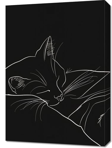 Obraz z serii minimalistyczne zatytułowany Nocny Spokój przedstawia subtelnie zarysowanego kota głęboko pogrążonego we śnie, umieszczonego na tle czarnej, nieskończonej przestrzeni. Białe linie delikatnie kreślą kształt zwierzęcia, uwypuklając jego spokojną postawę i łagodne rysy twarzy. To proste, lecz wyraziste dzieło sztuki przepełnione jest spokojem i elegancją, a kontrastowy czarno-biały motyw przyciąga wzrok i wprowadza do wnętrza atmosferę tajemniczości i wyciszenia. Idealny dla przestrzeni, które są azylem relaksu i odpoczynku, jak sypialnie czy zakątki do medytacji.