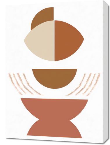 Obraz z serii boho zatytułowany Pastelowa Hipnoza. Łączy prostotę kształtów geometrycznych z subtelnością pastelowych barw, tworząc obraz o niemal hipnotycznym uporządkowaniu. W centrum kompozycji znajduje się dualistyczny kształt, który balansuje między symetrią a asymetrią, otoczony przez półkola i linie, przywołujące na myśl delikatne promienie słońca. Paleta kolorystyczna ogranicza się do ciepłych odcieni beżu, brązu i rdzawego różu, co dodaje dziełu wyrafinowanej subtelności. Doskonale odnajdzie się jako centralny punkt w jasnych, przestronnych wnętrzach, gdzie może stać się tłem dla głębokich refleksji, lub jako element dekoracyjny w minimalistycznie urządzonych pomieszczeniach, dodając im ciepła i elegancji.