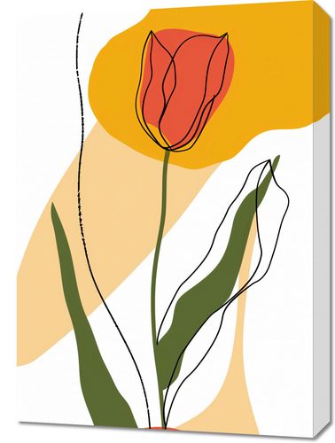 Obraz z serii minimalistyczne zatytułowany Przerysowany Tulipan, przedstawia stylizowany, rysunkowy tulipan w odcieniach ciepłej czerwieni, wyłaniający się z delikatnego tła w odcieniach beżu i żółci. Jego proste linie i odważne kolory tworzą spokojną, ale zarazem żywą kompozycję, która odświeży każde wnętrze. Doskonale sprawdzi się w jasnych salonach, sypialniach czy biurach, gdzie może dodać subtelnej elegancji lub stać się miłym akcentem na tle bardziej neutralnej dekoracji.