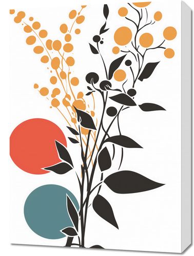 Obraz z serii minimalistyczne zatytułowany Rozkwitające Życie. Obraz przedstawia odświeżającą i ożywioną kompozycję, w której czarne sylwetki roślin wzbijają się ku bogato kolorowym okręgom, tworząc wizję rozkwitającego ogrodu. Kolorystyka plakatu, pełna złotych, pomarańczowych i akwamarynowych akcentów na białym tle, oddaje radość i obfitość natury.Ten obraz będzie pięknym dodatkiem do każdej przestrzeni, która chce oddać hołd naturze i jej niezwykłemu pięknu. Świetnie pasuje do jasnych, przestronnych wnętrz, takich jak salony, gabinety czy jadalnie. Z pewnością wprowadzi do pomieszczenia atmosferę witalności i naturalnego piękna.