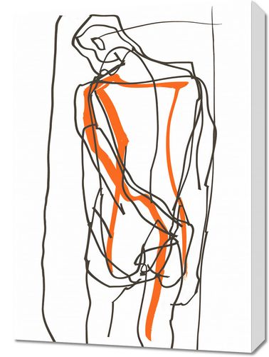 Obraz z serii minimalistyczne zatytułowany Ruch i Akcent. Grafika wykorzystuje dynamiczny zarys, aby przekazać poczucie ruchu i energii. Grube, czarne linie szkicują formę, która może być interpretowana jako postać w ruchu, a intensywne, pomarańczowe akcenty dodają dziełu dramatyzmu i głębi. Sama forma jest tylko nakreślona, pozostawiając wiele miejsca dla interpretacji widza. Całość zdaje się być złapanym w locie fragmentem większej narracji, momentem zawieszonym między akcją a spoczynkiem.Plakat wniesie do przestrzeni surową, artystyczną energię. Idealnie nada się do awangardowych przestrzeni, jak loftowe apartamenty, studia artystyczne czy nowoczesne biura, gdzie może stać się punktem zaczepienia dla oka i inspiracją do kreatywnych dyskusji.
