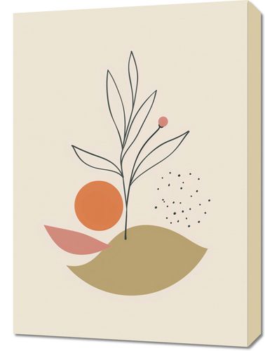Plakat z serii boho zatytułowany Subtelna Naturaleza. Prezentuje on minimalistyczny obraz rośliny na tle geometrycznych kształtów. Złagodzone barwy, takie jak musztardowy, koralowy i pastelowy róż, połączone z akcentami czerni i kremowego tła, tworzą obraz pełen harmonii i subtelnego piękna. Niemal poetycka kompozycja sugeruje spokój natury, z rośliną osadzoną w sercu plakatu, która wydaje się być uosobieniem wzrostu i spokoju.Ten obraz jest idealny dla wnętrz w stylu skandynawskim, boho, czy też modernistycznym, dodając lekkości i organicznego charakteru przestrzeni. Doskonale sprawdzi się w salonie, sypialni, a nawet w przestrzeni biurowej, przynosząc element spokoju i zrównoważonej estetyki.