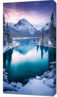 Obraz z serii pejzaże zatytułowany Górzyste Prześwity. Ten obraz ukazuje zachwycający zimowy krajobraz z krystalicznie czystym jeziorem, które odbija lśniące szczyty górskie i pastelowe barwy zachodzącego słońca. Obfite śnieżne pokrywy na drzewach i brzegach jeziora dodają scenie poczucia spokoju i izolacji. Idealny do wnętrz, które chcą wprowadzić elementy spokojnego piękna natury, ten plakat jest doskonałym dodatkiem do przestrzeni mieszkalnych, biurowych lub jako ukojenie w miejscach publicznych, wprowadzając atmosferę wyciszenia i odprężenia.