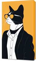 Obraz z serii abstrakcja zatytułowany Jegomość to stylizowany portret kota w ludzkim ubiorze. Charakterystyczne, czarno-białe ubarwienie kota zostało podkreślone przez elegancki, czarny garnitur z białą koszulą oraz modnymi, żółtymi okularami, które dodają postaci wyrafinowanego uroku. Tło w intensywnym odcieniu musztardy idealnie komponuje się z całością, nadając plakatowi ciepły i wyrazisty charakter. Silny profil kota, wyraźne linie i minimalistyczne podejście do szczegółów czynią ten obraz zarówno zabawnym, jak i eleganckim, idealnym do przestrzeni, które cenią sobie humor i styl, takich jak nowoczesne biura, domowe biblioteki czy saloniki.
