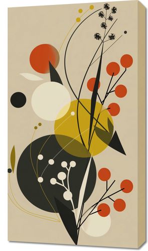 Obraz z serii minimalistyczne zatytułowany Naturaleza. Grafika prezentuje wyjątkowe połączenie abstrakcyjnych kształtów i naturalnych elementów w ciepłej palecie barw. Organiczne formy roślin przeplatają się z geometrycznymi kształtami, tworząc złożoną i intrygującą kompozycję pełną życia i dynamiki. Czerwienie, żółcie, czernie i beże komponują się w harmonijną całość, przypominającą abstrakcyjny pejzaż lub bukiet. Idealnie nadaje się do wnętrz, gdzie sztuka łączy się z naturą, tworząc spokojne, ale pełne energii przestrzenie. Doskonały do salonu, biura, lub każdej przestrzeni, która pragnie wprowadzić elementy sztuki inspirowanej naturą.