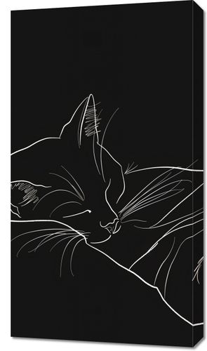 Obraz z serii minimalistyczne zatytułowany Nocny Spokój przedstawia subtelnie zarysowanego kota głęboko pogrążonego we śnie, umieszczonego na tle czarnej, nieskończonej przestrzeni. Białe linie delikatnie kreślą kształt zwierzęcia, uwypuklając jego spokojną postawę i łagodne rysy twarzy. To proste, lecz wyraziste dzieło sztuki przepełnione jest spokojem i elegancją, a kontrastowy czarno-biały motyw przyciąga wzrok i wprowadza do wnętrza atmosferę tajemniczości i wyciszenia. Idealny dla przestrzeni, które są azylem relaksu i odpoczynku, jak sypialnie czy zakątki do medytacji.