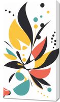 Obraz z serii minimalistyczne zatytułowany Radosny Bujak. To żywiołowe i radosne przedstawienie abstrakcyjnej roślinności, które łączy odważne kształty i przemyślaną paletę barw. Dominują tu intensywne odcienie żółcieni i czerwieni, zestawione z spokojnymi akcentami turkusu i czerń głębokiej nocy, przełamane żółtymi i niebieskimi akcentami w formie kropek, tworząc kompozycję pulsującą życiem i energią. Ten obraz to idealne rozwiązanie dla przestrzeni, które potrzebują odrobiny optymizmu i witalności. Doskonale sprawdzi się w przestronnych salonach, kreatywnych pracowniach, a nawet w kącikach dla dzieci, gdzie jego żywe kolory i dynamiczne formy mogą pobudzać wyobraźnię i dodawać energii.