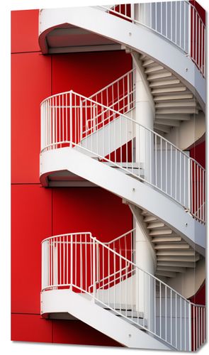 Obraz z serii wnętrza zatytułowany Schody do Niebios. Ten obraz to dynamiczne zestawienie białej, spiralnej klatki schodowej z intensywnie czerwonym tłem ściany budynku. Czyste linie, krzywe i kolorystyczny kontrast tworzą wyrafinowaną kompozycję, która łączy funkcjonalność z estetyką. Idealny dla nowoczesnych przestrzeni komercyjnych i mieszkalnych, które chcą wnieść element współczesnego designu i architektonicznej odwagi, ten plakat jest doskonałym wyborem dla miłośników designu, architektów oraz wszystkich, którzy cenią sobie wyrazistość i mocne, wizualne wrażenie.