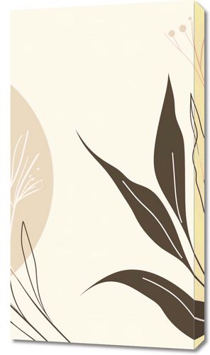 Plakat z serii minimalistyczne zatytułowany Splątana Wizja. Dzieło to przedstawia stylizowane rośliny w spokojnych, ziemiście ciepłych kolorach, tworząc poczucie spokoju i harmonii. Delikatne linie i płynne kształty przywodzą na myśl spokojny dzień na łonie natury. Plakat ma wyrafinowany i jednocześnie prosty charakter, który łączy w sobie elementy natury z minimalistycznym designem.Ten obraz będzie idealnym wyborem dla wnętrz, w których panuje atmosfera relaksu i spokoju, takich jak joga lub spa. Jego łagodne barwy i naturystyczne motywy są idealne do przestrzeni, gdzie priorytetem jest spokój umysłu i harmonia z otaczającym środowiskiem, takich jak salon, sypialnia, czy miejsce do medytacji.