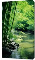 Obraz z serii natura zatytułowany Spokój Bambusów. Ukazuje on idylliczny zakątek przyrody, gdzie zielone pędy bambusa delikatnie zginają się nad błogim, spokojnie płynącym strumieniem. Gra światła i cienia na liściach bambusa tworzy wrażenie głębi i spokoju, zaś szemrząca woda dodaje uczucie świeżości i czystości. Ten obraz oddaje piękno i spokój odosobnionego zakątka natury, jest więc idealny dla przestrzeni relaksacyjnych takich jak spa, pokoje do medytacji lub jako ukojenie w zgiełku codzienności w domowych wnętrzach. To doskonała dekoracja dla tych, którzy pragną wprowadzić element natury i harmonii do swojego otoczenia.