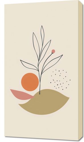 Plakat z serii boho zatytułowany Subtelna Naturaleza. Prezentuje on minimalistyczny obraz rośliny na tle geometrycznych kształtów. Złagodzone barwy, takie jak musztardowy, koralowy i pastelowy róż, połączone z akcentami czerni i kremowego tła, tworzą obraz pełen harmonii i subtelnego piękna. Niemal poetycka kompozycja sugeruje spokój natury, z rośliną osadzoną w sercu plakatu, która wydaje się być uosobieniem wzrostu i spokoju.Ten obraz jest idealny dla wnętrz w stylu skandynawskim, boho, czy też modernistycznym, dodając lekkości i organicznego charakteru przestrzeni. Doskonale sprawdzi się w salonie, sypialni, a nawet w przestrzeni biurowej, przynosząc element spokoju i zrównoważonej estetyki.